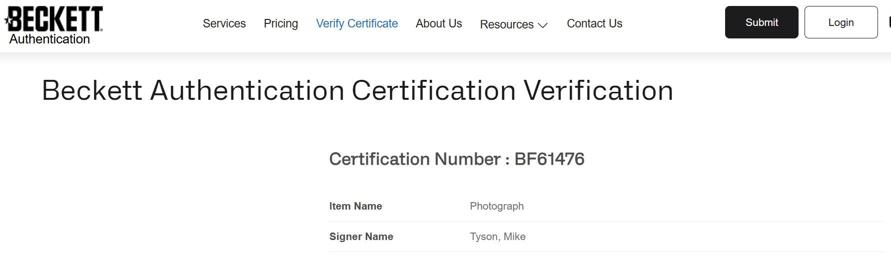 Mike Tyson Fotografía autografiada, firma certificada por la compañía Beckett con el número BF61476.