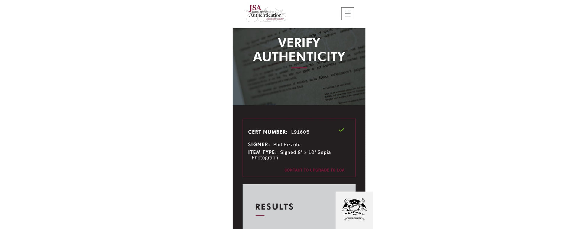 Phil Rizzuto fotografía autografiada, con certificado de autenticidad de JSA L91605.