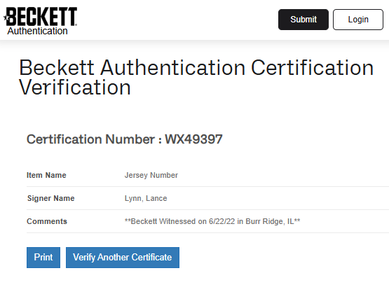 Firma certificada por una de las empresas más grandes y reconocidas de la industria Beckett Authentication Services.