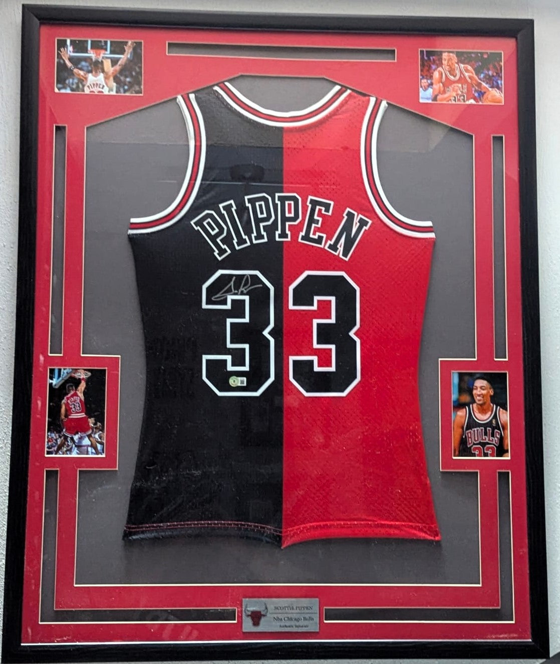 Scottie Pippen Playera Original Chicago Bulls Autografiada Certificada por Beckett W170568 enmarcada