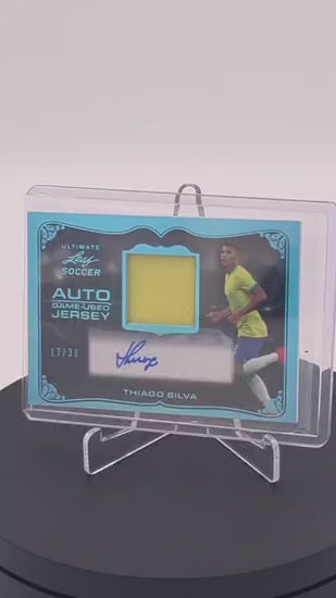 Tarjeta de Thiago Silva, en el frente de la tarjeta encontrarás pieza de playera utilizada durante el juego, edición limitada 17/30.