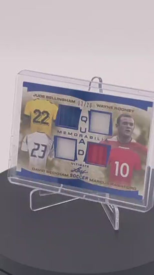 Jude Bellingham y Wayne Rooney Tarjeta UQM-3 Leaf en el frente de la tarjeta encontrarás pieza de playera utilizada durante el juego.