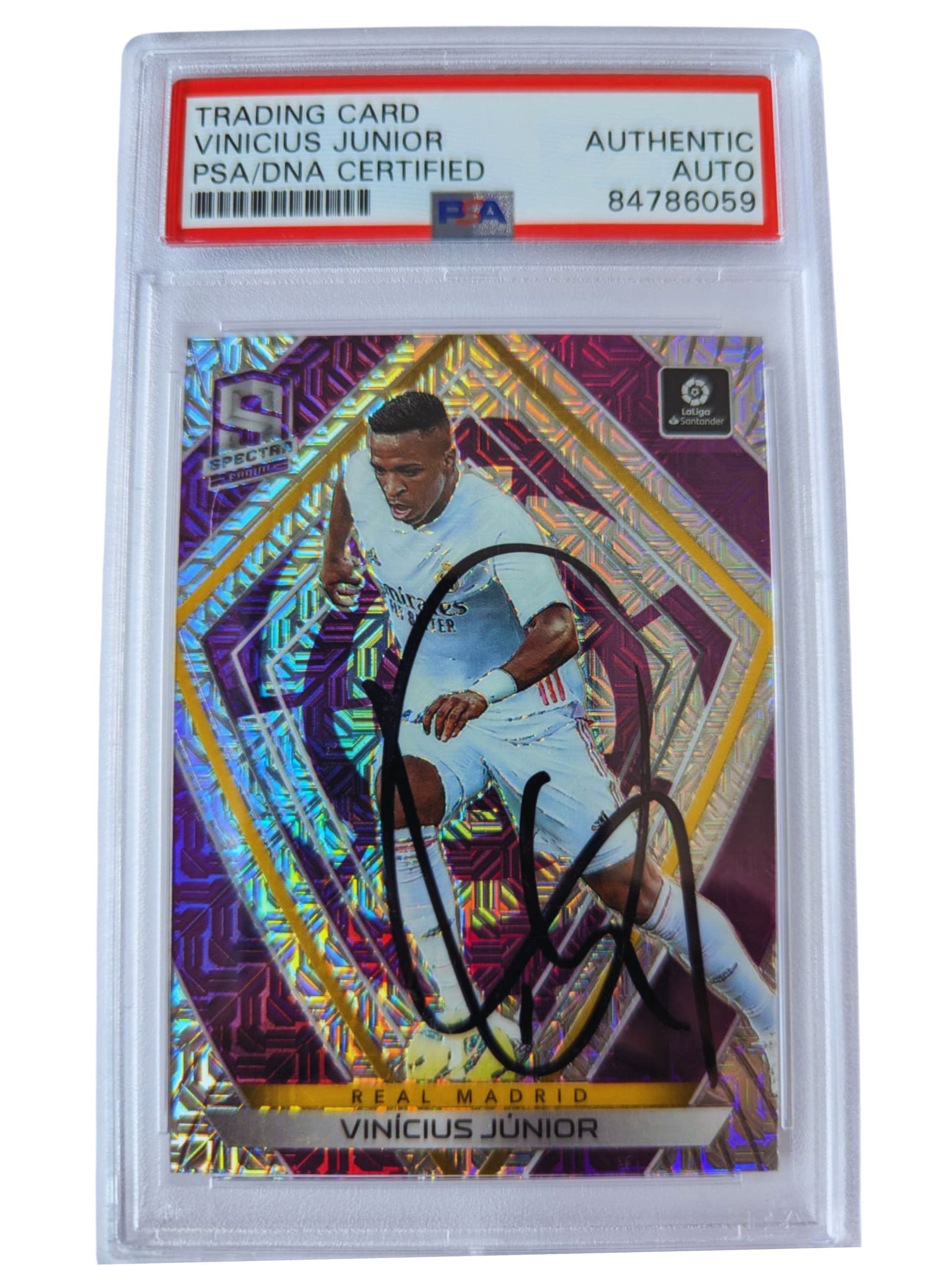 Vinicius Junior tarjeta autografiada enmarcada certificado del autógrafo por PSA 84786059.